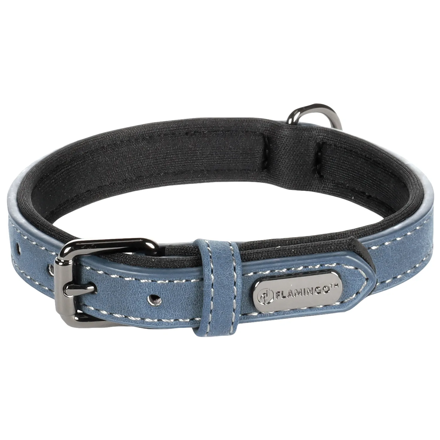 Flamingo Collier Chien Delu Simili Cuir avec Néoprène Bleu