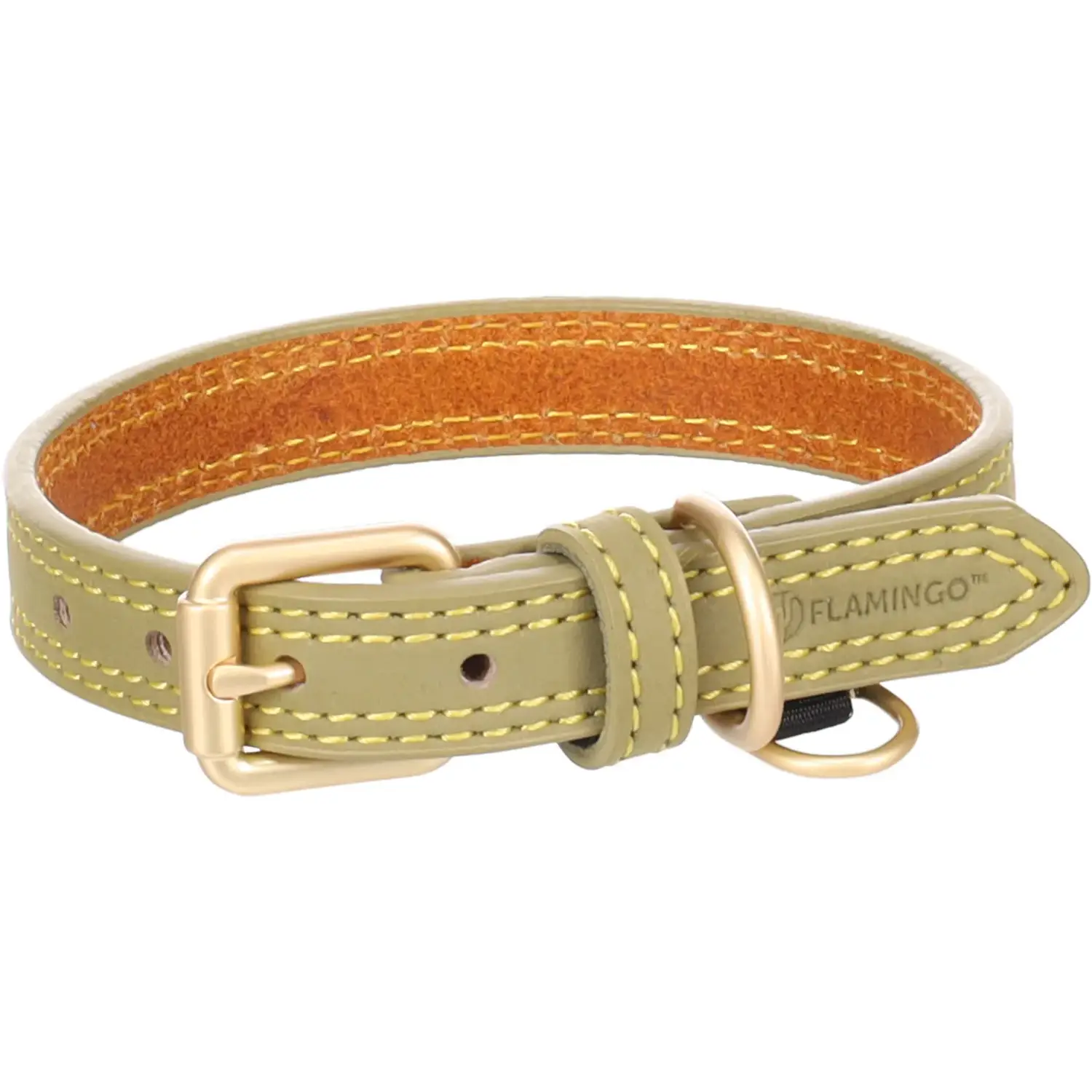 Flamingo Collier Chien Virginia Cuir Véritable Vert